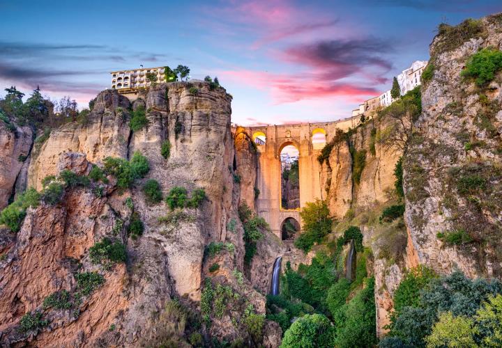 - Salida de Granada. Viajamos hacia la Costa del Sol. MÁLAGA, llegada y tiempo para un paseo por su centro histórico, donde destaca la catedral y el museo de Picasso. Tras ello continuamos por la autopista costera, con bonitos paisajes sobre el Mediterráneo. PUERTO BANUS, ubicado en Marbella, bello puerto recreativo de alto nivel. Por la tarde seguimos ruta por la serranía, historias de bandoleros antes de llegar a RONDA, bellísimo pueblo blanco con su gran tajo que corta la ciudad por la mitad. Continuación a SEVILLA. Llegada al final de la tarde. Cena incluida en el hotel.