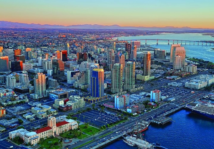 - Salida con rumbo a San Diego, por la autopista 5 en medio de los conjuntos residenciales más avanzados del planeta. Bordeando la costa a la llegada a la bella ciudad San Diego se visita La Jolla, Mission Bay, Old Town, la bahía del downtown, el distrito histórico «Gaslamp District», Bay Bridge, la isla de Coronado y el parque Balboa. Después del tour, hacemos el registro en el hotel. Noche libre.